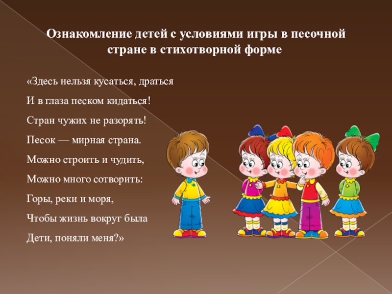 Ознакомление детей с условиями игры в песочной стране в стихотворной форме