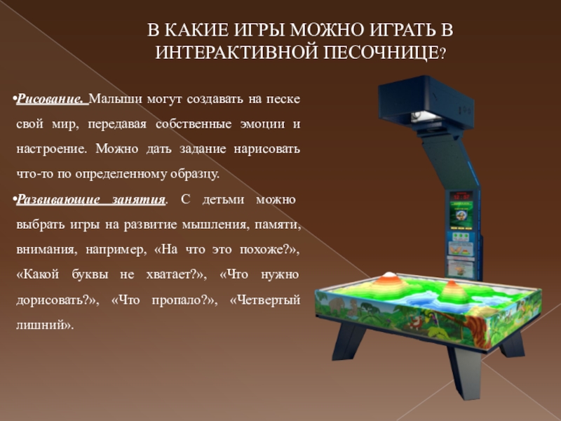 ЧТО ПРЕДСТАВЛЯЕТ СОБОЙ ИНТЕРАКТИВНАЯ ПЕСОЧНИЦА ДЛЯ ДЕТЕЙ ?