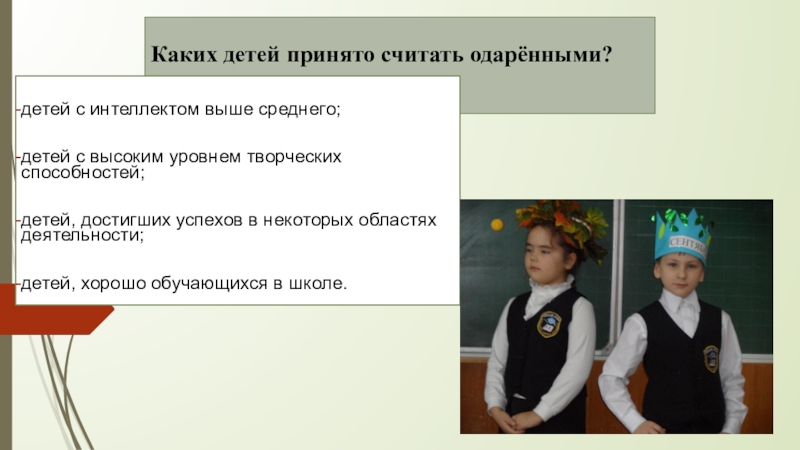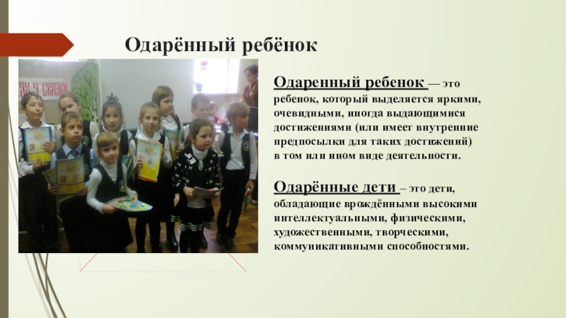 Одарённые дети – это дети, обладающие врождёнными высокими интеллектуальными, физическими, художественными, творческими, коммуникативными способностями.