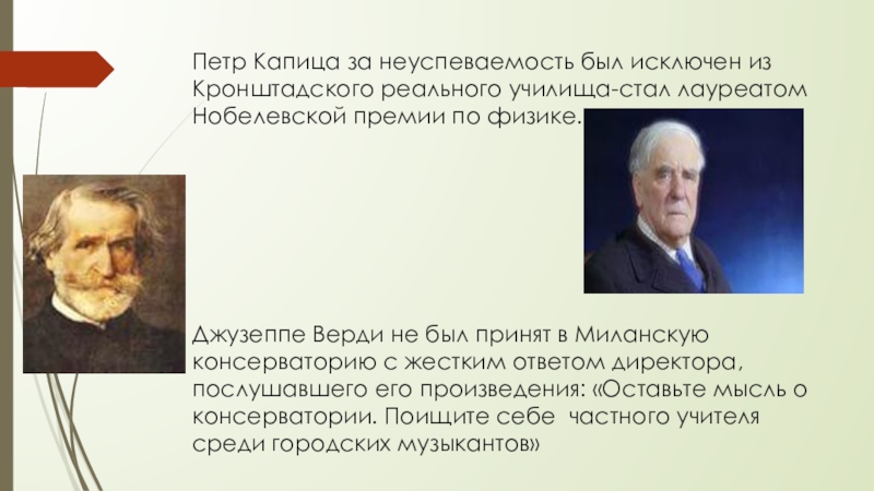 Слайд 40Петр Капица за неуспеваемость был исключен из Кронштадского реального училища-стал лауреатом