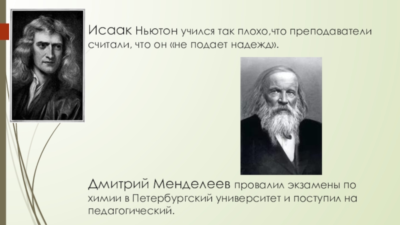 Слайд 38Исаак Ньютон учился так плохо,что преподаватели считали, что он «не подает