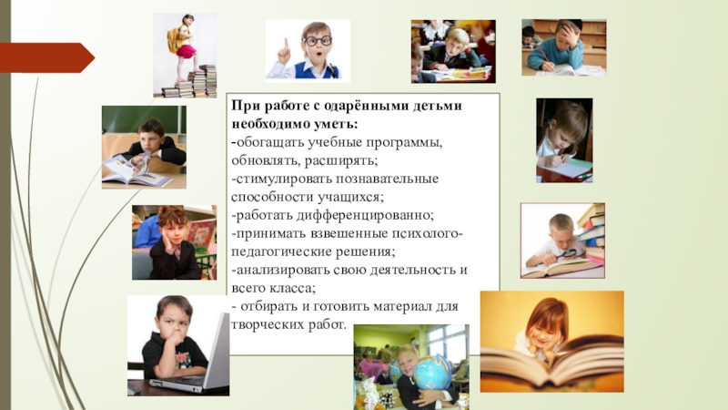 Слайд 21При работе с одарёнными детьми необходимо уметь: