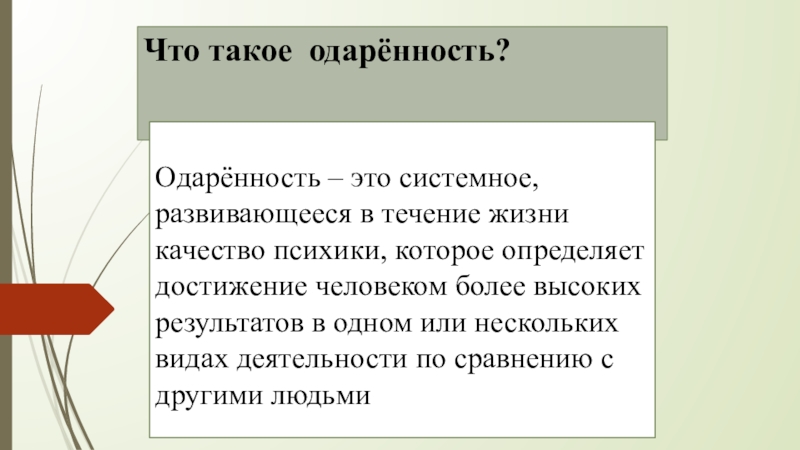 психики, которое определяет достижение человеком более высоких результатов в одном или нескольких видах деятельности по сравнению с другими людьми