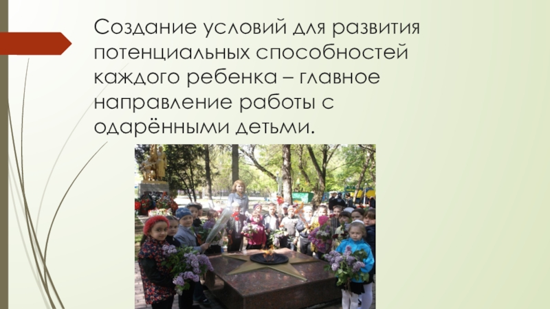 Слайд 10Создание условий для развития потенциальных способностей каждого ребенка – главное направление