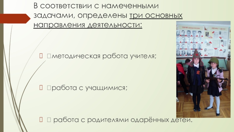 Слайд 24В соответствии с намеченными задачами, определены три основных направления деятельности: