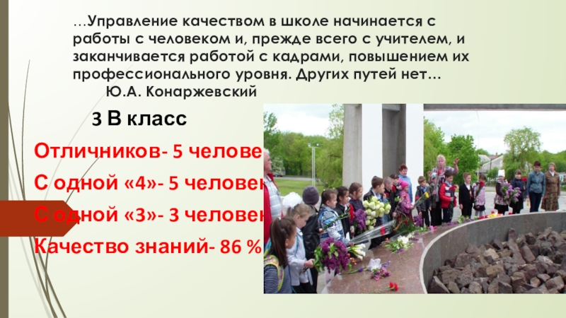 Слайд 11…Управление качеством в школе начинается с работы с человеком и, прежде