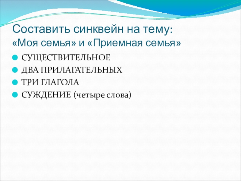 Слайд 3Составить синквейн на тему: «Моя семья» и «Приемная семья»