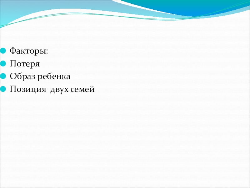 Факторы:ПотеряОбраз ребенкаПозиция двух семей