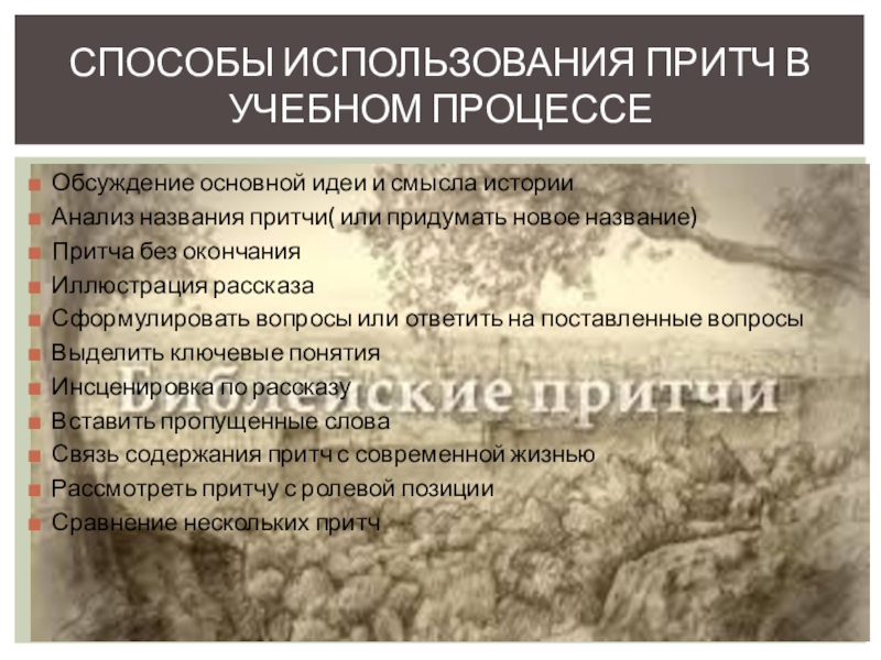 Способы использования притч в учебном процессе