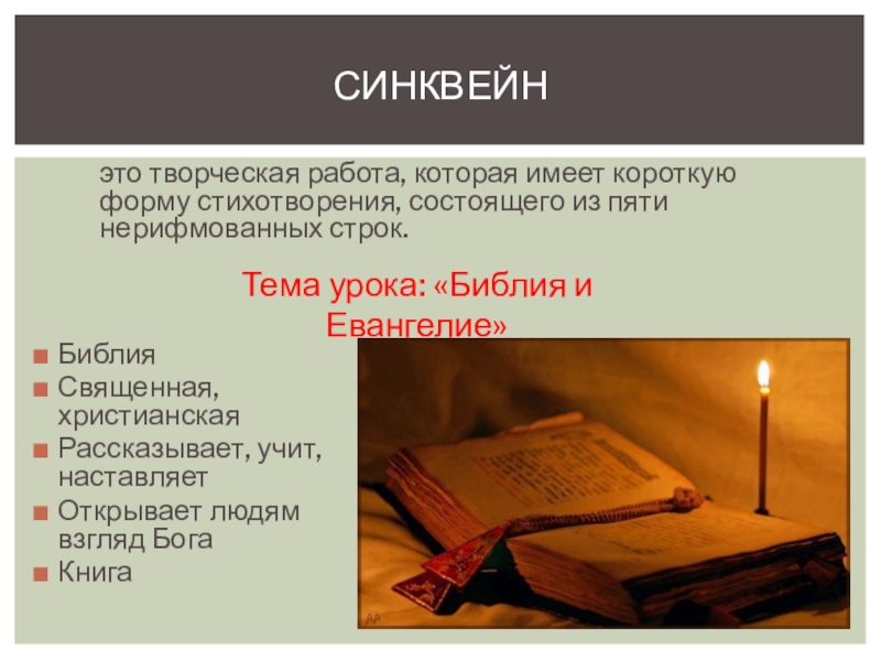 Тема урока: «Библия и Евангелие»