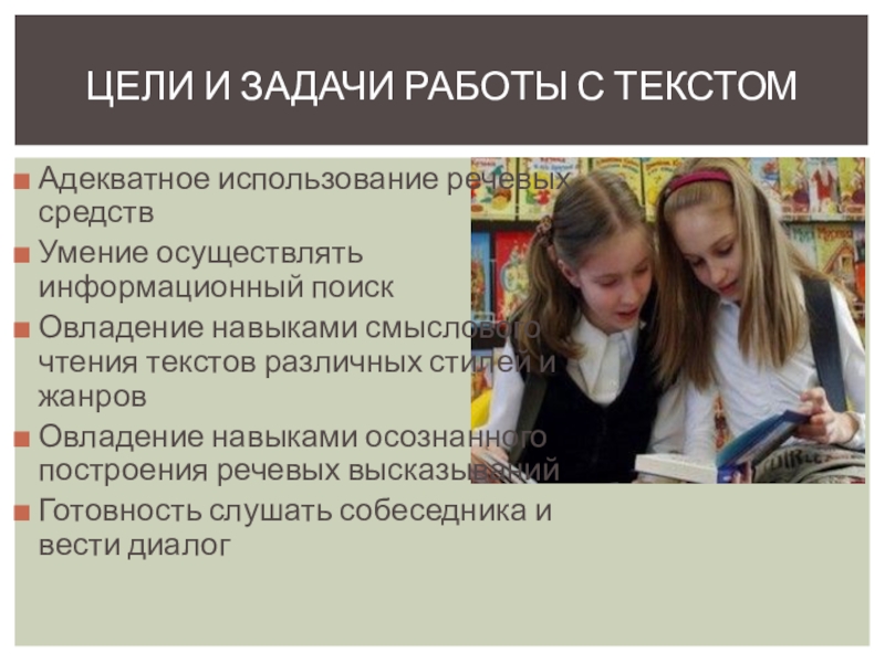Цели и задачи работы с текстом