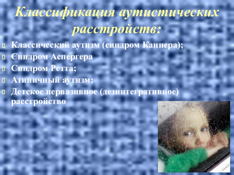 Слайд 2 Ранний детский аутизм (синдром Лео Каннера) –