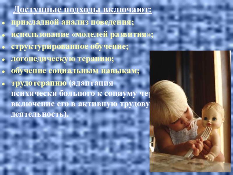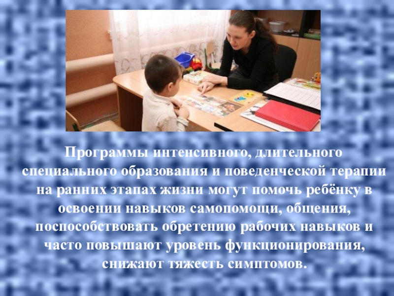 Слайд 14 Программы интенсивного, длительного специального образования и поведенческой терапии на