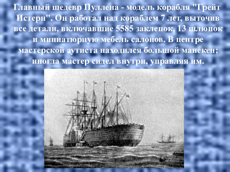 Слайд 17 Главный шедевр Пуллена - модель корабля "Грейт Истерн". Он