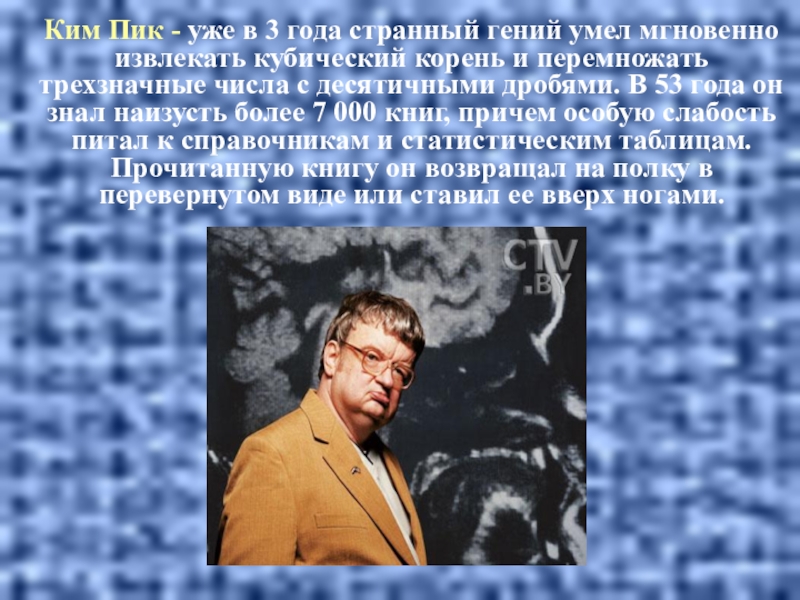 Слайд 18 Ким Пик - уже в 3 года странный гений