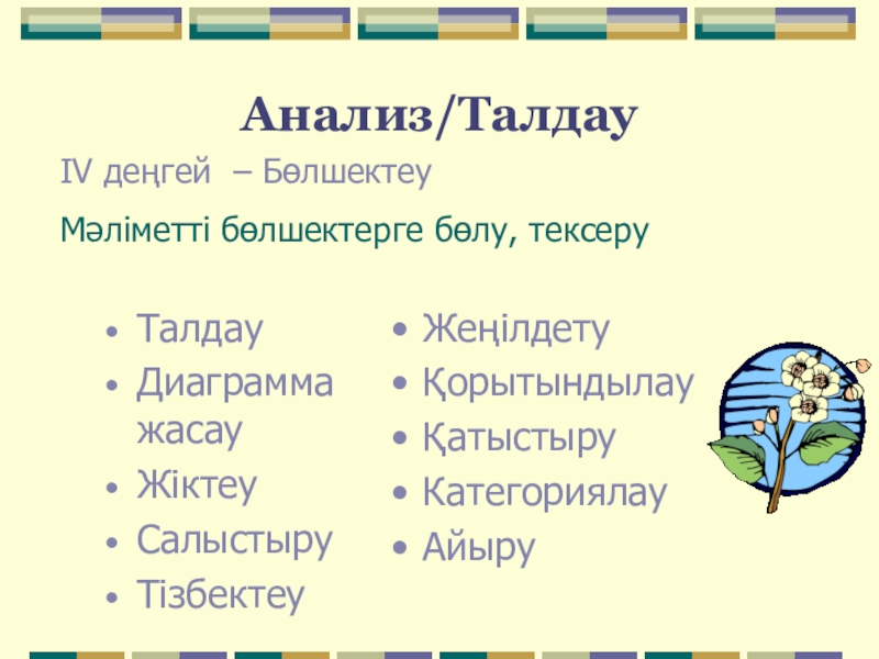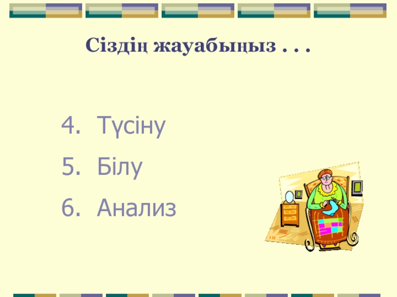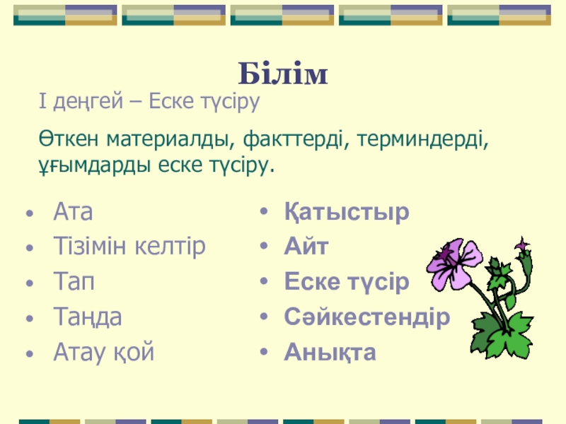 Өткен материалды, факттерді, терминдерді, ұғымдарды еске түсіру.