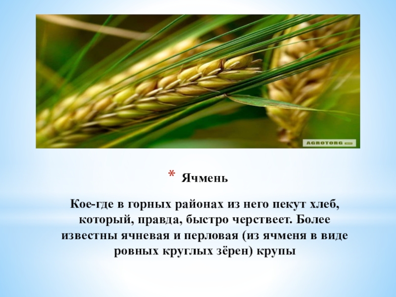 черствеет. Более известны ячневая и перловая (из ячменя в виде ровных круглых зёрен) крупы