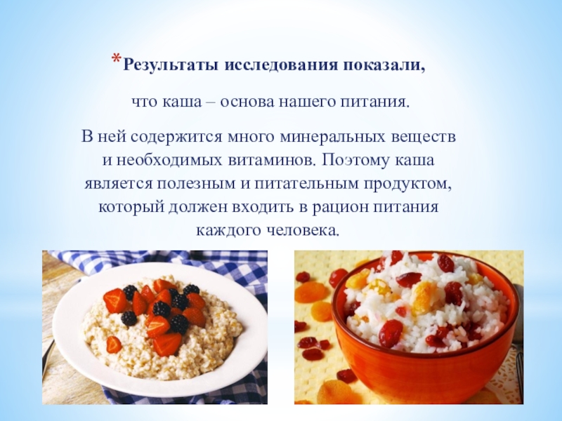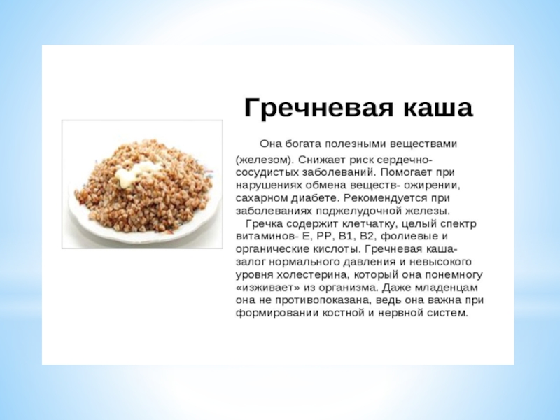 содержится много минеральных веществ и необходимых витаминов. Поэтому каша является полезным и питательным продуктом, который должен входить в рацион питания каждого человека.