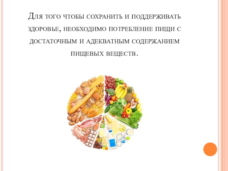 Слайд 14Для того чтобы сохранить и поддерживать здоровье, необходимо потребление пищи с