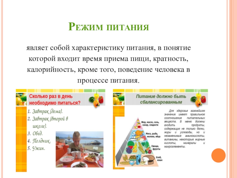 пищи, кратность, калорийность, кроме того, поведение человека в процессе питания.