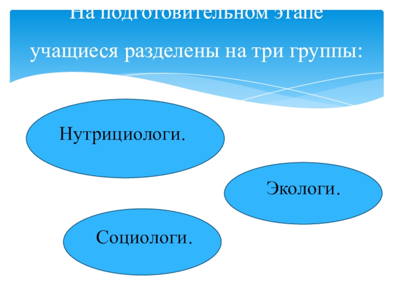 Слайд 6На подготовительном этапе учащиеся разделены на три группы: