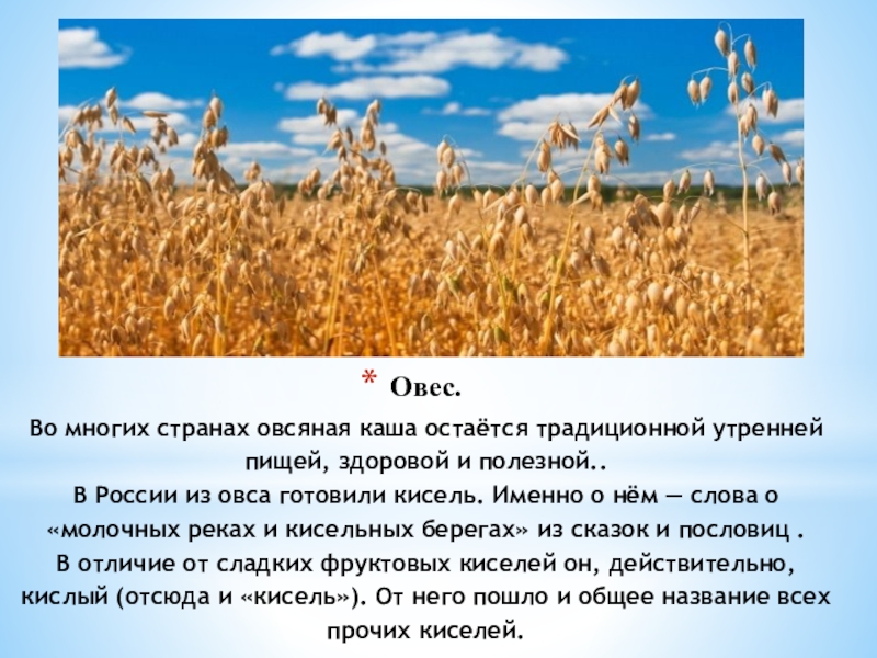 В России из овса готовили кисель. Именно о нём — слова о «молочных реках и кисельных берегах» из сказок и пословиц .