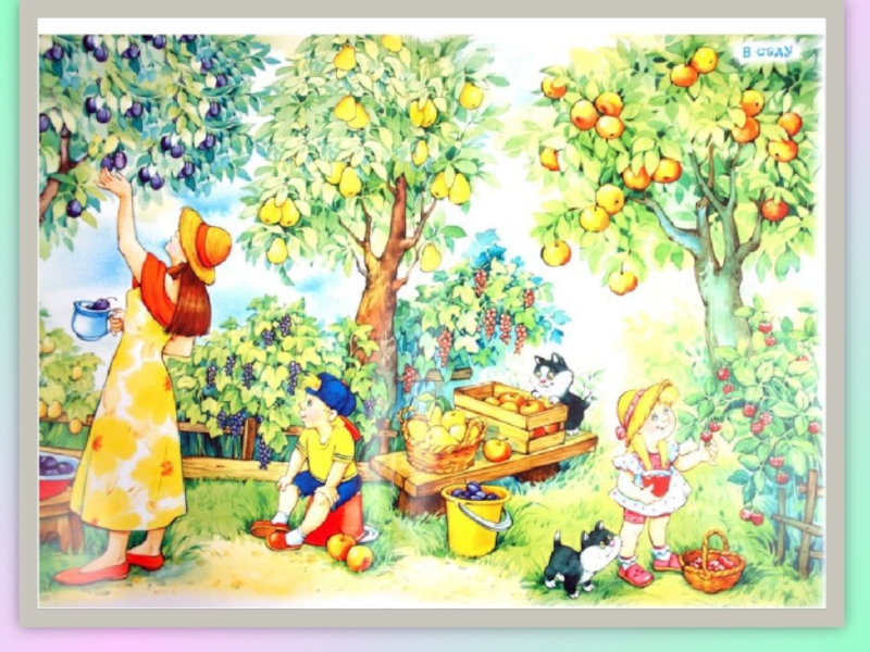Слайд 1Различение растений огорода (овощи), сада (фрукты, ягоды)