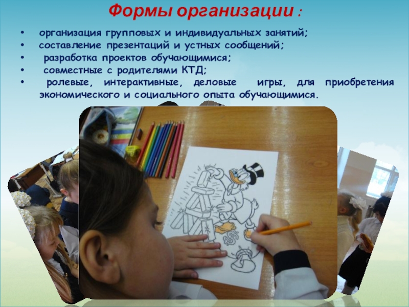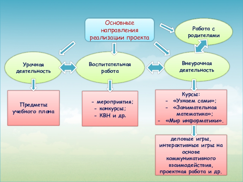 деловые игры, интерактивные игры на основе коммуникативного взаимодействия, проектная работа и др.