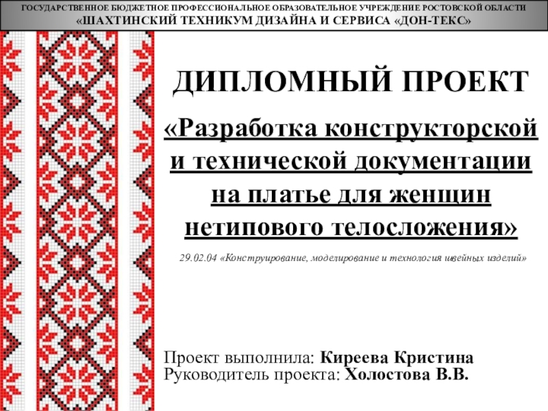 «Разработка конструкторской и технической документации на платье для женщин нетипового телосложения»
