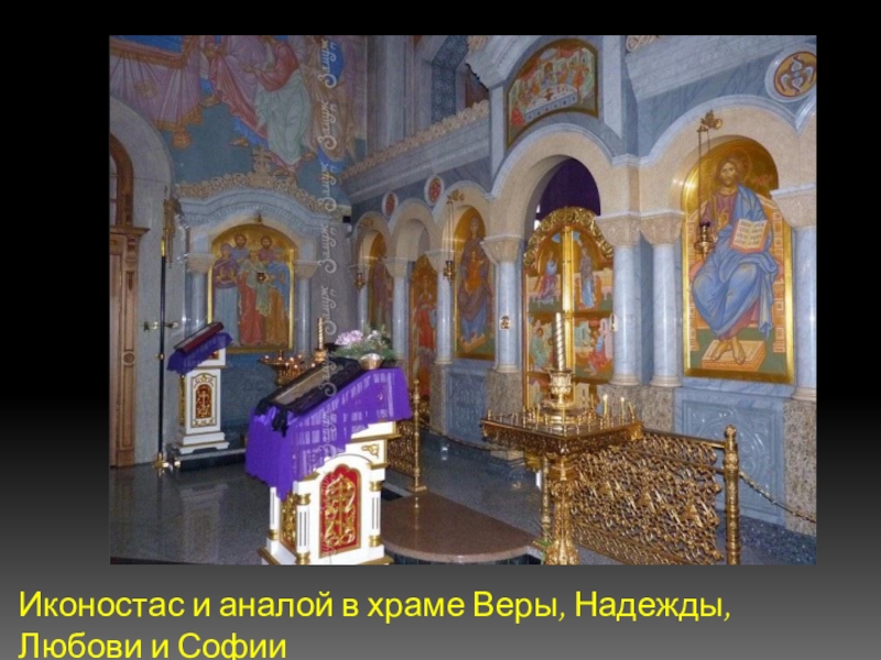 Слайд 16Иконостас и аналой в храме Веры, Надежды, Любови и Софии