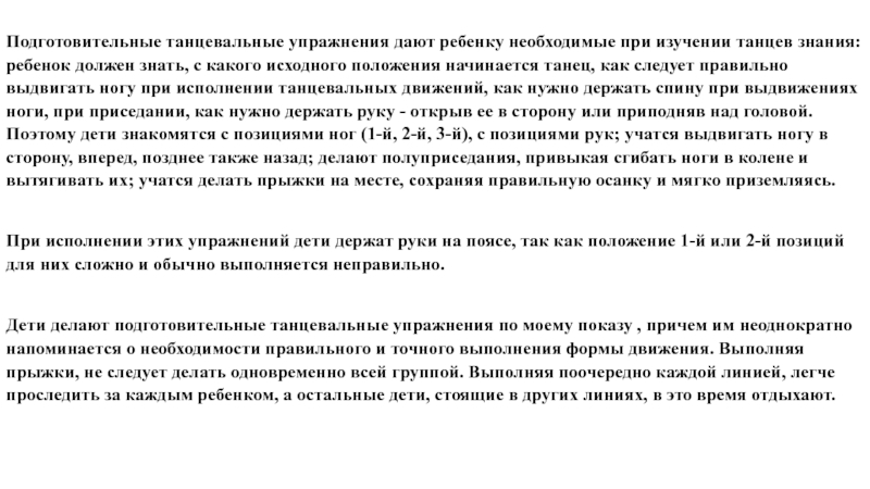Слайд 8Подготовительные танцевальные упражнения дают ребенку необходимые при изучении танцев знания: ребенок