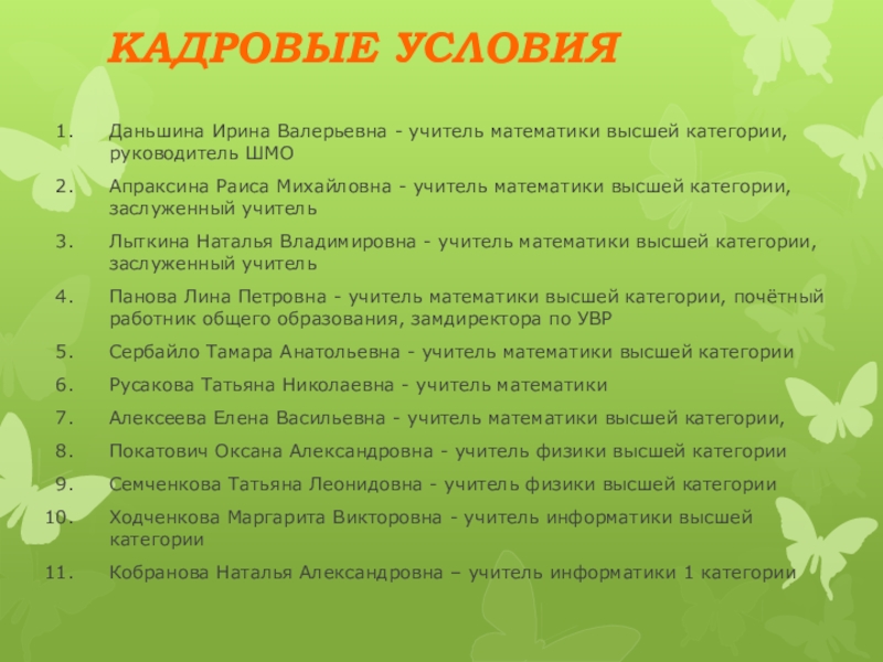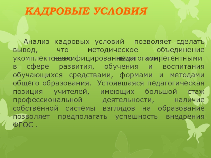 Слайд 3КАДРОВЫЕ УСЛОВИЯ