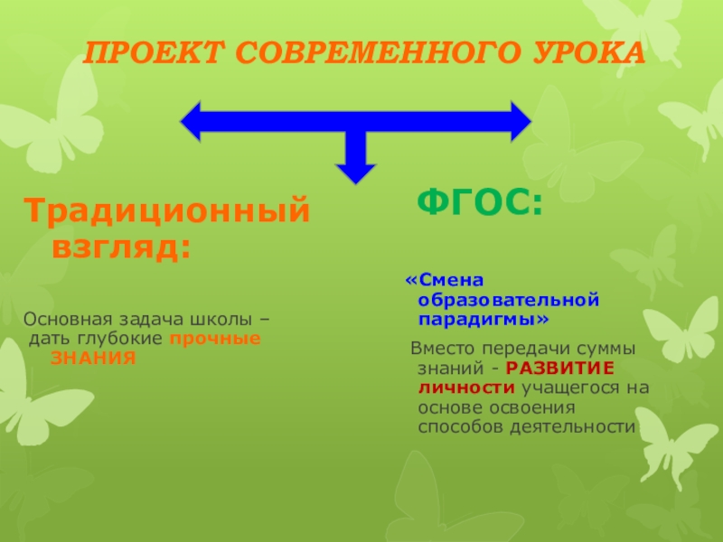 Вместо передачи суммы знаний - РАЗВИТИЕ личности учащегося на основе освоения способов деятельности