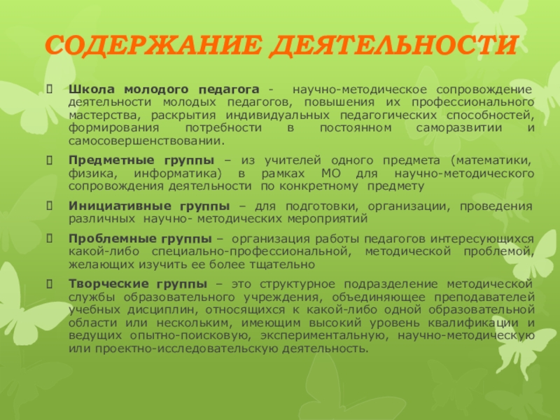 Слайд 6СОДЕРЖАНИЕ ДЕЯТЕЛЬНОСТИ