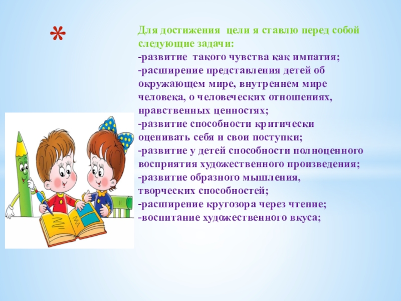 -развитие у детей способности полноценного восприятия художественного произведения;
