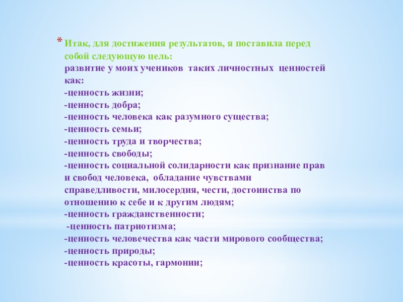 Слайд 3Итак, для достижения результатов, я поставила перед собой следующую цель: