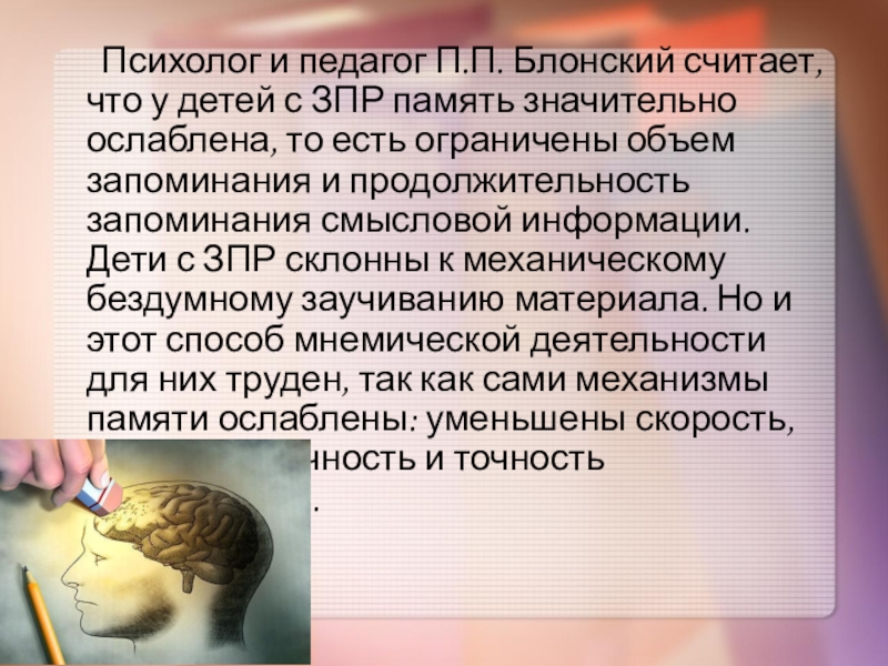 Недостаточная сформированность умственных операций