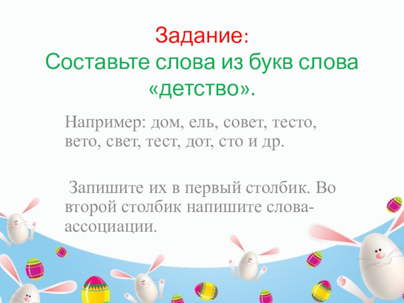 Запишите их в первый столбик. Во второй столбик напишите слова-ассоциации.