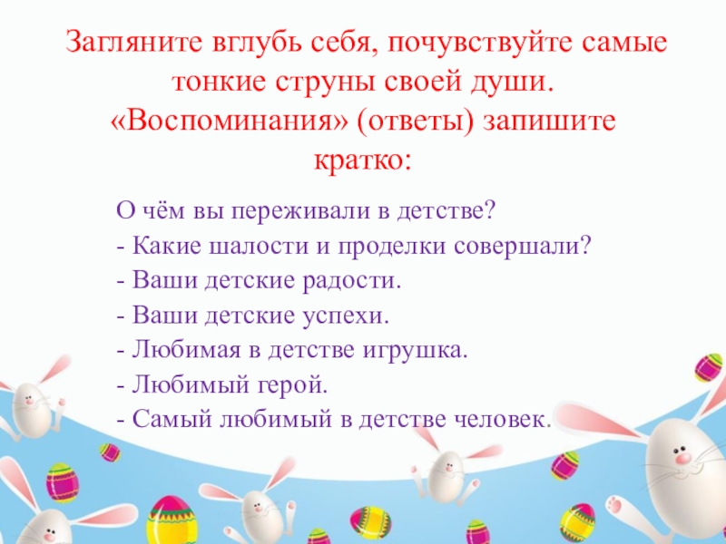 Загляните вглубь себя, почувствуйте самые тонкие струны своей души. «Воспоминания» (ответы)