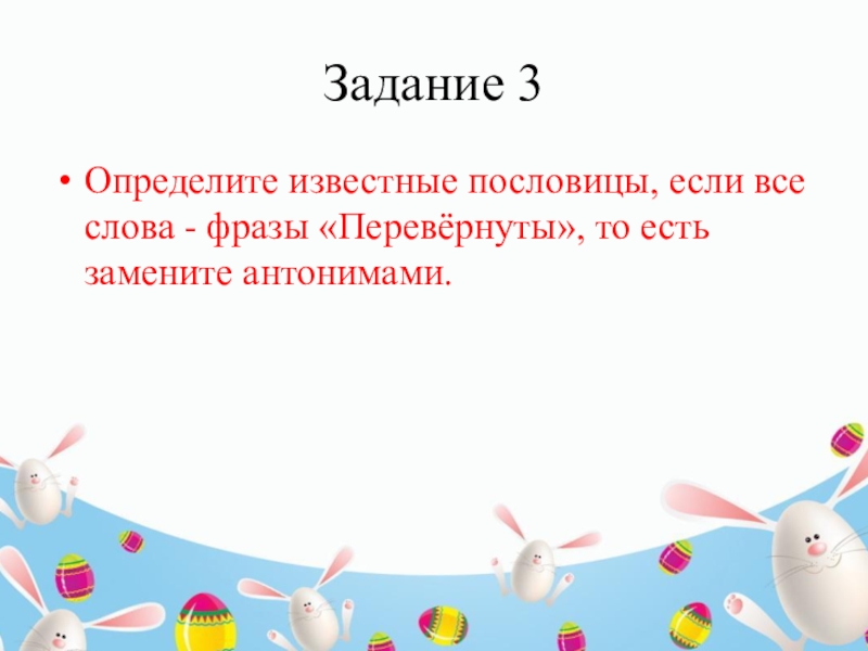 Определите известные пословицы, если все слова - фразы «Перевёрнуты», то