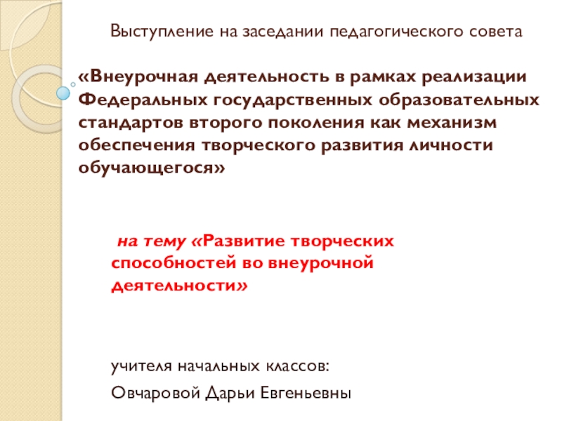 на тему «Развитие творческих способностей во внеурочной деятельности»