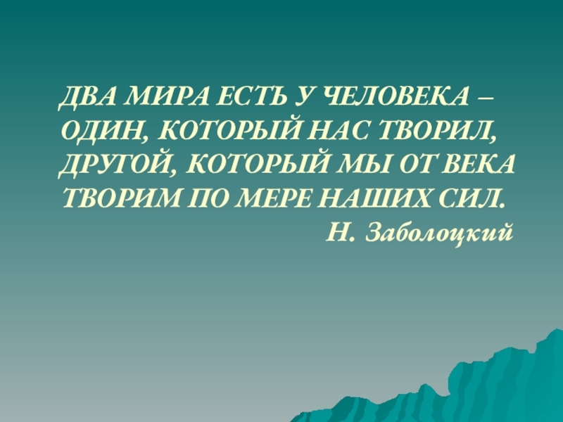 Слайд 2ДВА МИРА ЕСТЬ У ЧЕЛОВЕКА –