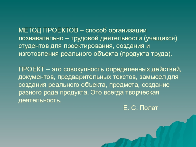 Слайд 5МЕТОД ПРОЕКТОВ – способ организации познавательно – трудовой деятельности (учащихся) студентов