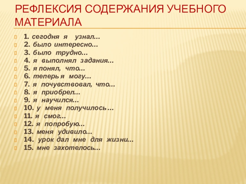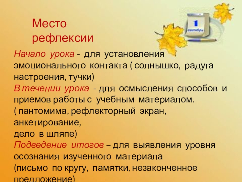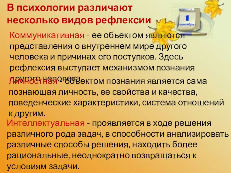 Виды учебной рефлексии