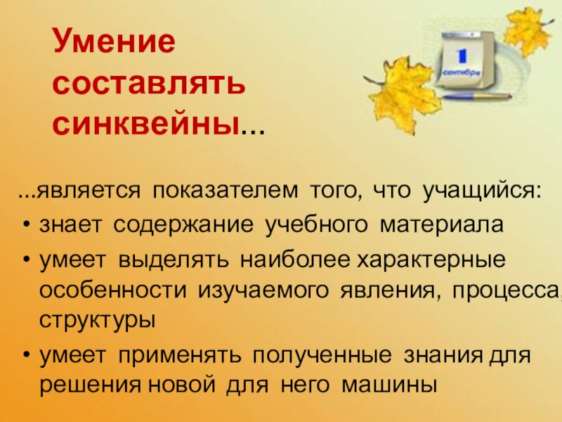 Умение составлять синквейны…
