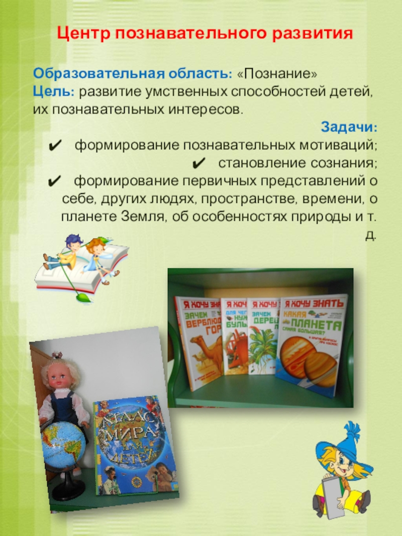 формирование первичных представлений о себе, других людях, пространстве, времени, о планете Земля, об особенностях природы и т.д.
