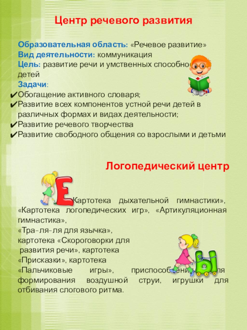 «Картотека дыхательной гимнастики», «Картотека логопедических игр», «Артикуляционная гимнастика»,