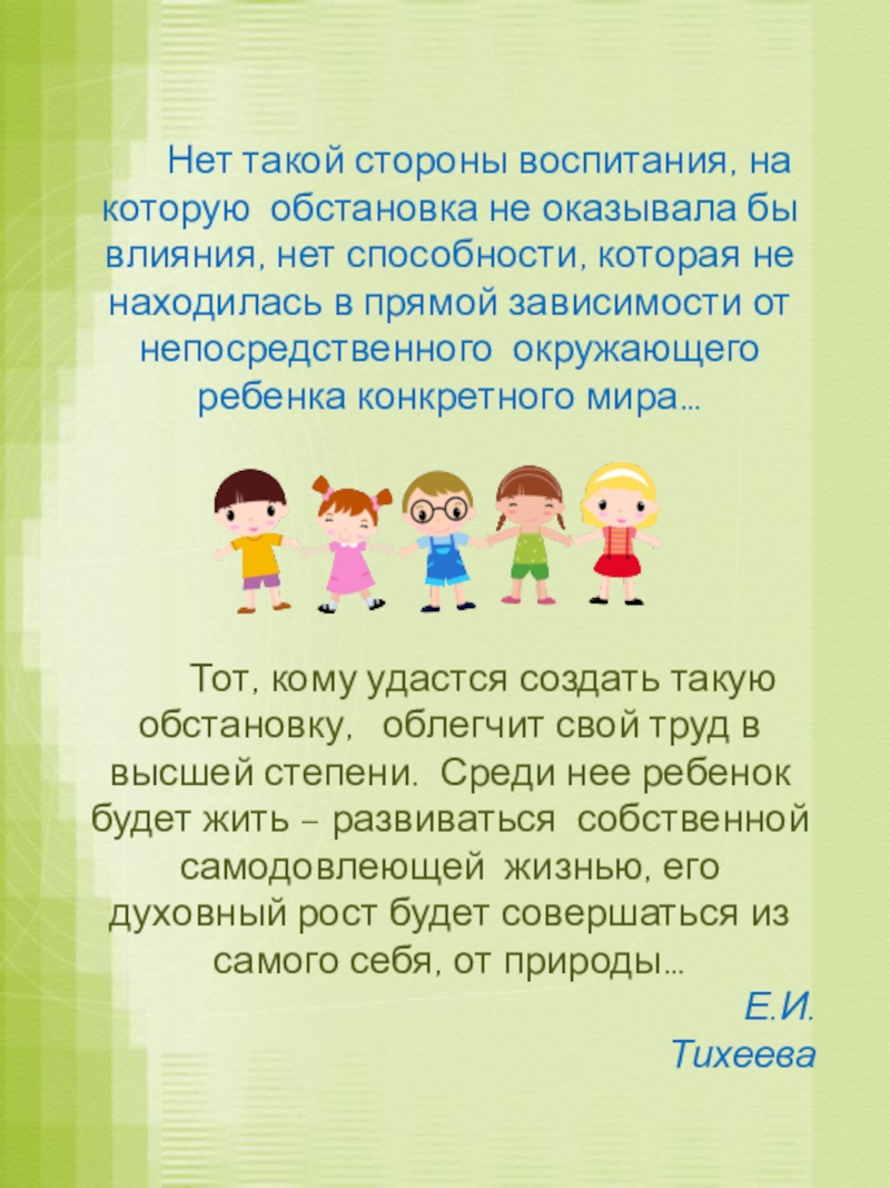 Слайд 2Нет такой стороны воспитания, на которую обстановка не оказывала бы влияния,