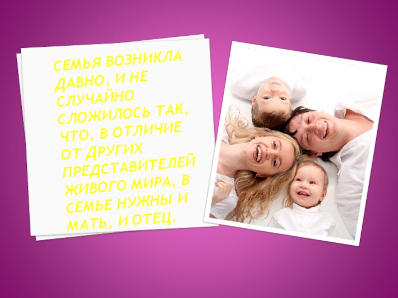Слайд 2СЕМЬЯ ВОЗНИКЛА ДАВНО, И НЕ СЛУЧАЙНО СЛОЖИЛОСЬ ТАК, ЧТО, В ОТЛИЧИЕ