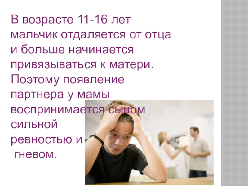 привязываться к матери. Поэтому появление партнера у мамы воспринимается сыном сильной